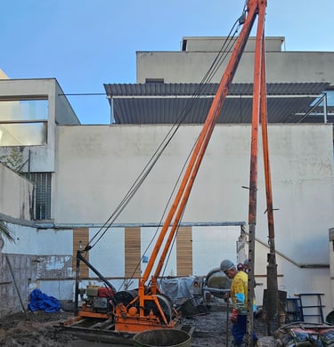 Fundações profundas sem vibração, perfeitas para áreas urbanas e terrenos úmidos.